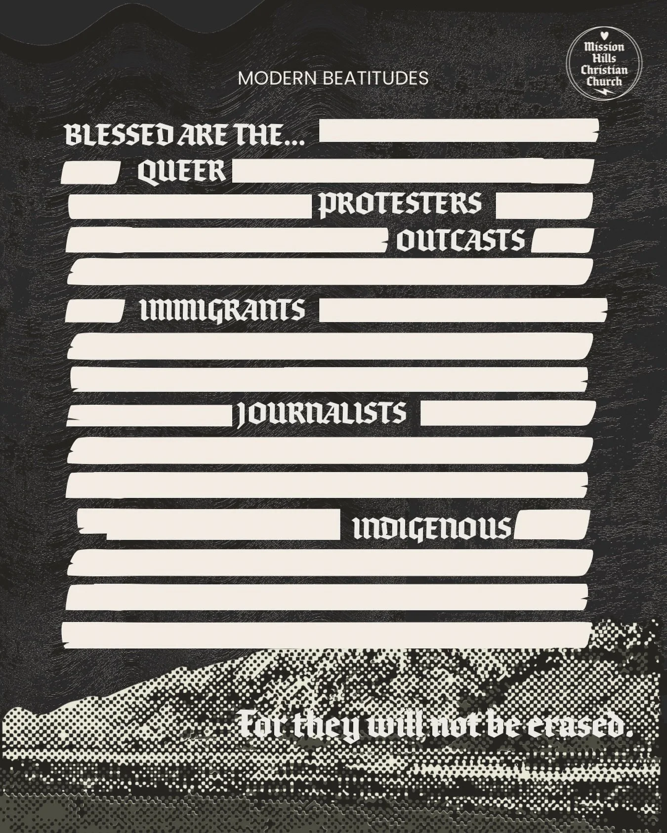 Mission Hills is a progressive and contemplative community that honors and celebrates people of all gender identities, sexual orientations, abilities, faiths, ethnicities, and economic backgrounds. We create radical spaces of belonging, healing, and wholeness.