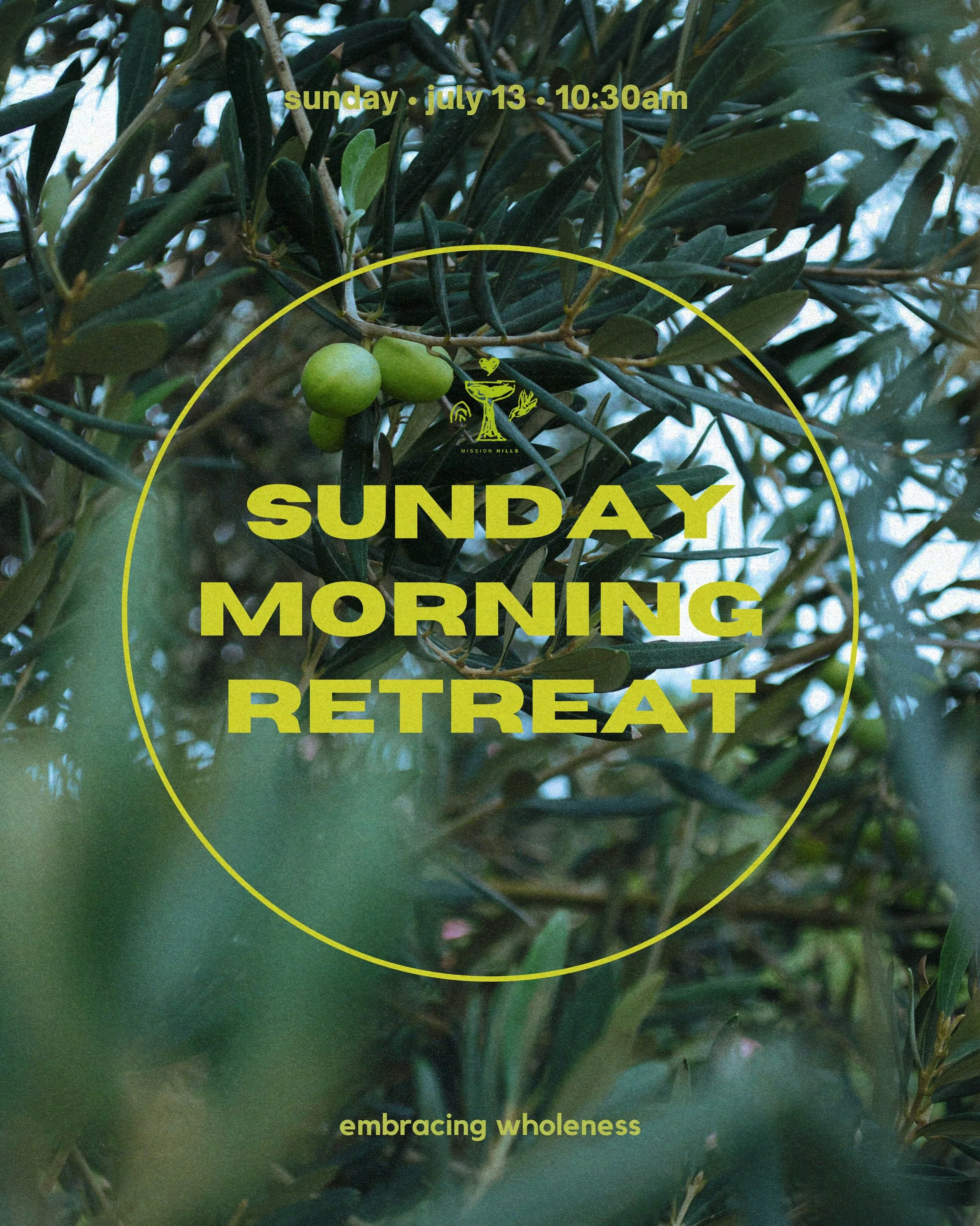 Join us on Sunday, July 13, at 10:30 am for a Sunday Morning Retreat. This year's theme is Embracing Wholeness, and we will have a variety of practices and spaces for you to create and explore what wholeness means and feels like for you in this season. We will meet outside, behind the church, next to the parsonage.